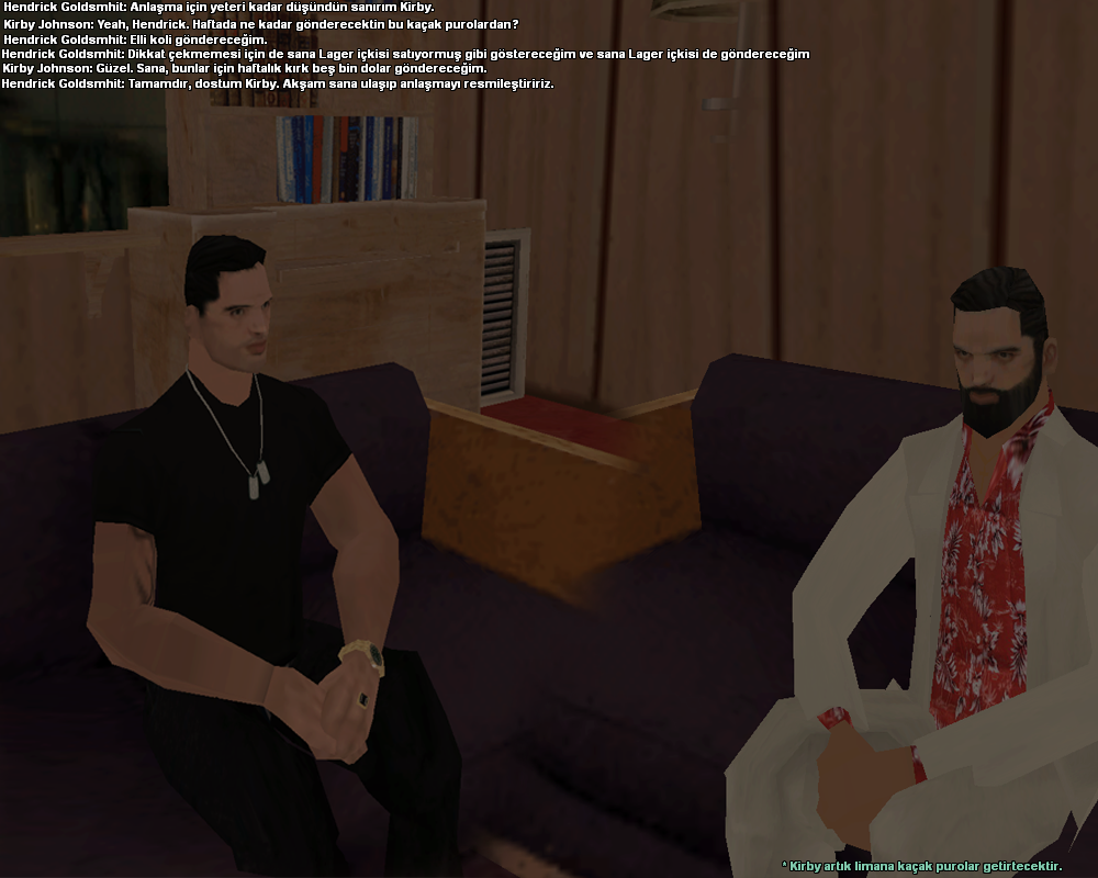 Kirby, Hendrick'in ürettiği kaçak İngiliz Puro'larını satmak için şehirde kiraladığı bir araç ile dolaşmaya çıkmıştır. Bir tane bulduğu müşteri Kirby'nin dikkatini çekmiştir. Müşteri beyaz takom elbise giyiyordu aynı... Aynı patronu Adriano "Don" Pedrotti gibi giyinmişti. Kirby o adama birkaç puro sattıktan sonra aracına biner bir süre düşünür. Vice Şehri'nde yaşadıkları aklına gelmeye başlamıştır. Jack Fiero ve Eddie Fiero ile yaşadıkları bir takım maceralar aklına gelmiş ve duygulanmıştır. Aracını en yakın olan kafeye sürmüştür.