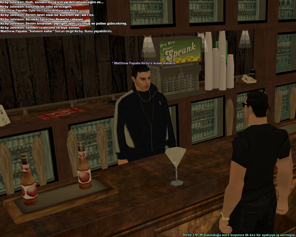 Güzel bir köşeye oturmuş ve bir şarap almıştır. Cebinden bir adet puro çıkarmış ve yakmıştır. Şarabından bir yudum almıştır ve tadını pek sevmemiştir. Çünkü en sevdiği şarap markası Valotti'dir. Bu Kirby'nin aklına gelmiş ve acaba duyduğu olaylardan sonra Mob-Alley'de neler oldu veya oluyor, bilmiyor. Bunu orada yaşayan Carl'a sormakta istememiştir. Çünkü sokağın gangsterlerı onu pek arasına almıyor. Çünkü Carl daha lise son sınıf öğrencisi. Bu yüzden Kirby, Vice Şehrine gitmek ile gitmemek arasında karar vermemiştir. Eğer Kirby Vice'a giderse Lion çetesi bu boşluktan yararlanıp Kirby'nin işlerine veya sevdiklerine zarar verebilir. Gitmezse de Mob-Alley'de neler olduğunu da anlayamaz. Gangster arkadaşlarını da arayamaz çünkü onlar Kirby'e, Lucas is ismiyle seslenmeyebilir bu yüzden tutuklanabilir. Kirby bu işi kendi başına düşünüp karar veremeyeceğini anlar ve purosundan son bir kere duman çeker ve söndürür. Ardından aracına biner ve elinde kalan son puroları satmak için sürmeye başlar. Bir süre sonra bir şey farkeder. Siyah bir Premier aracı Kirby hangi sokağa dönerse o araçta aynı sokağa dönüyor. Kirby bu durumdan şüphelenmiş ve Hendrick'e şöyle bir mesaj yazmıştır:"Hey, William! Her zamanki buluştuğumuz yerin önüne gelmen lazım acil. Bir kız buldum fena hem de çok fena. O Jacob'da senle birlikte olsun."