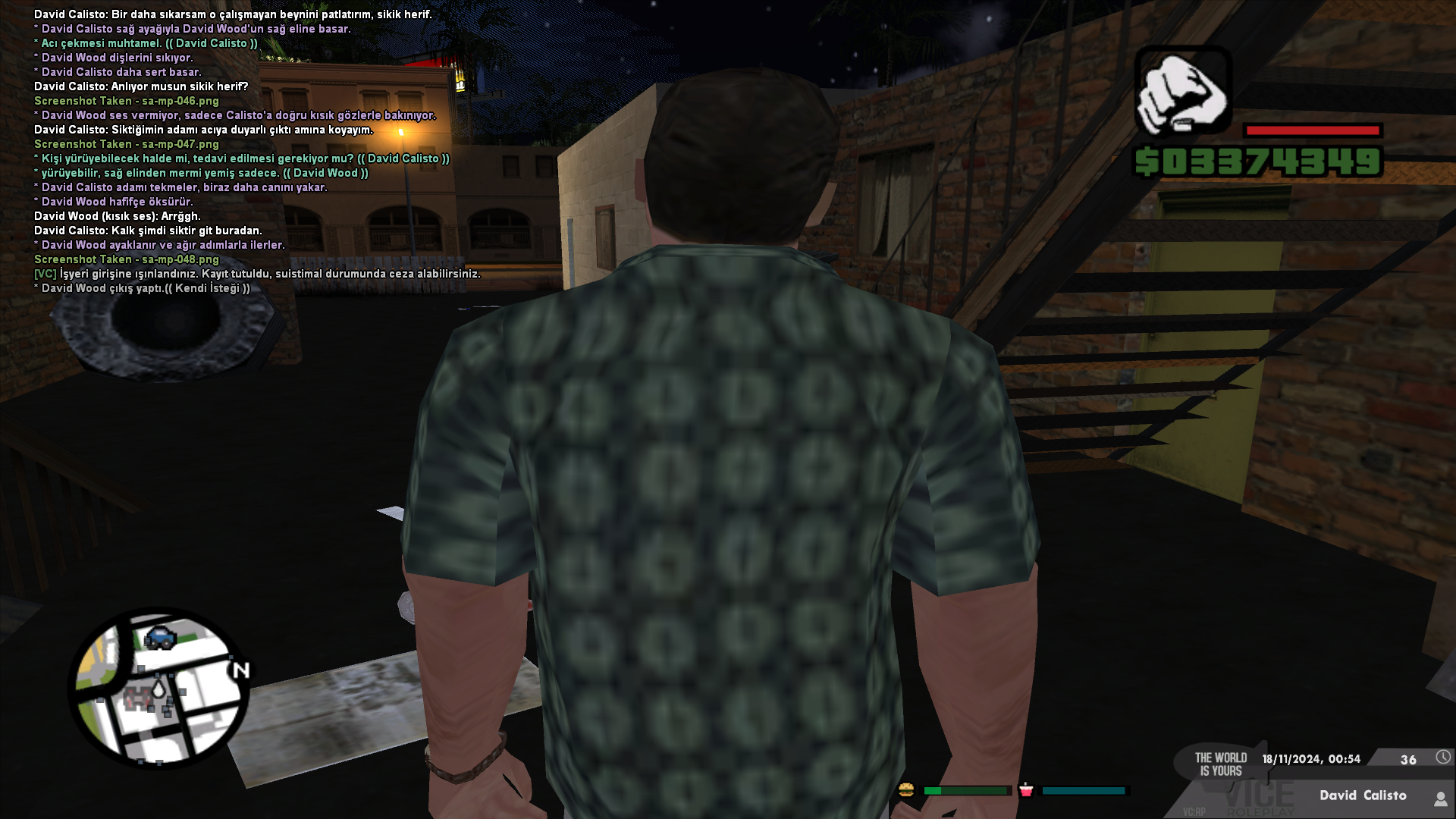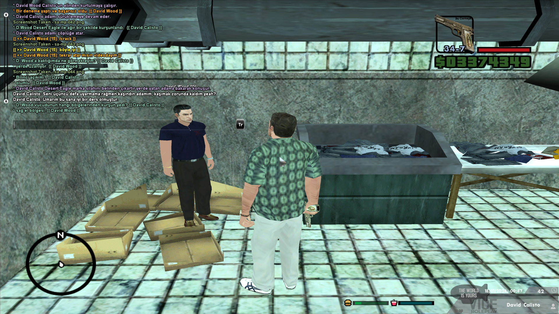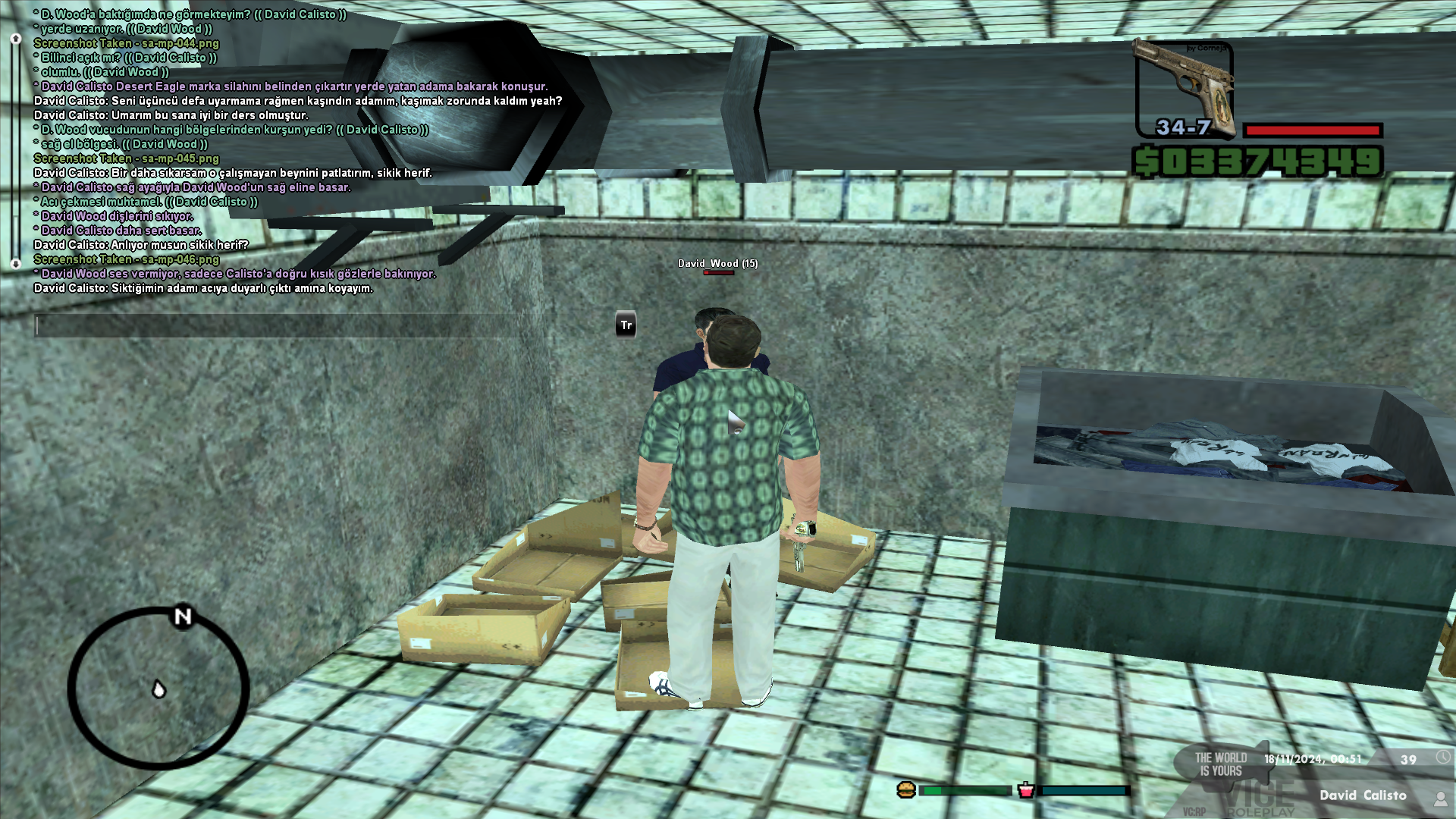 Başka bir konuya gelelim her karakter belli bir karakter gelişimi ister ve bu gelişim doğrultusunda ilerler. Karakterin 1 yıllık bir süreç içerisinde ne tür şeyler gördüğüne dayanırsak bu şekilde bir tavır almasını normal karşılayabiliriz. Üstencelik Valachi'ye çalışıyorsa daha farklı bir hal alır. Genel olarak kitlenin veya beni tanıyan insanların rol yapma anlayışımı bildiğini düşünüyorum, şu vakte kadar hiçbir şekilde "dokunulmaz" tabiriyle rol yaptığıma şahit olunmamıştır. Olayın başından itibaren David Wood gözüyle izleyelim.