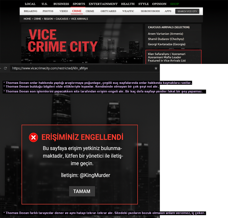 Bu nedenle, görev yetkiniz **askıya alınmış**, Rodeo’daki izole rezidansta **zorunlu psikiyatrik tedavi** başlatılmıştır. Ancak raporlar, Vice şehrinde hâlâ operasyon odaklı davranışlar sergilediğinizi ve Safaraliyev üyeleriyle teması sürdürdüğünüzü göstermektedir.