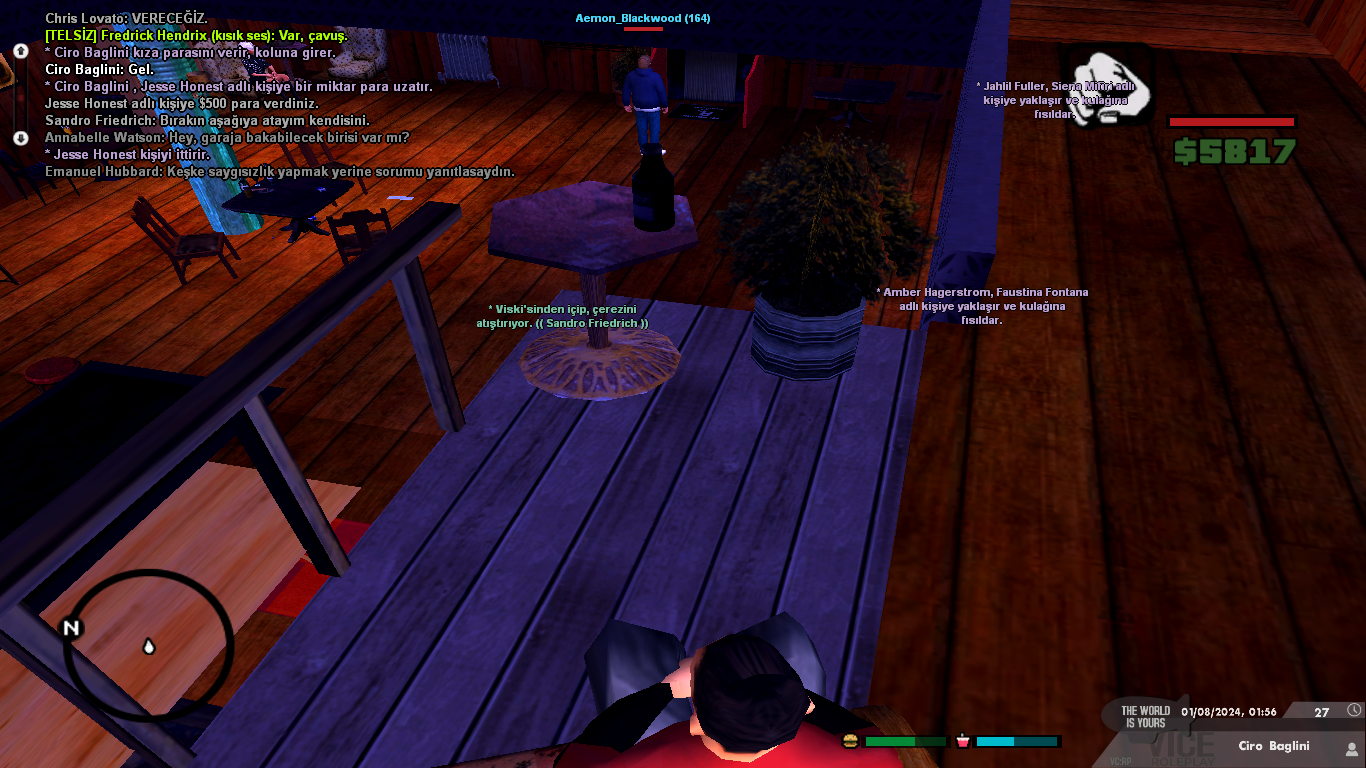 Gelelim asıl olaya, Bandits Barda dilencilik yapıyorsun, uyarıyoruz ve bana küfür ediyorsun(R20 karakter). Karşılık olarak çıkartmaya çalışıyoruz 3 kişi. Attığın tek emote /me kişiyi ittirir. ve etrafta koşturmaya devam ediyorsun ettiğin küfür zaten kendi videon'da da var;