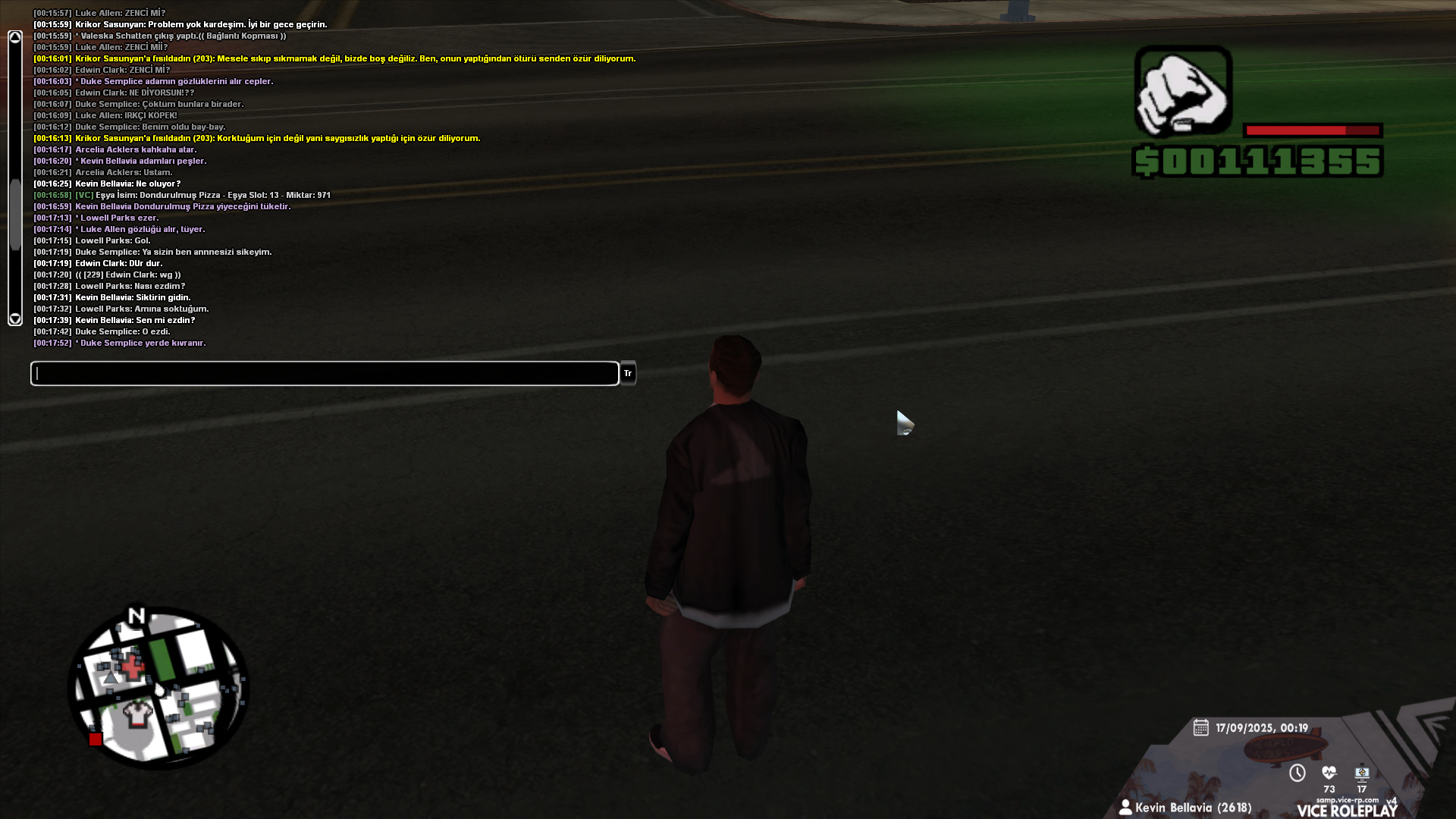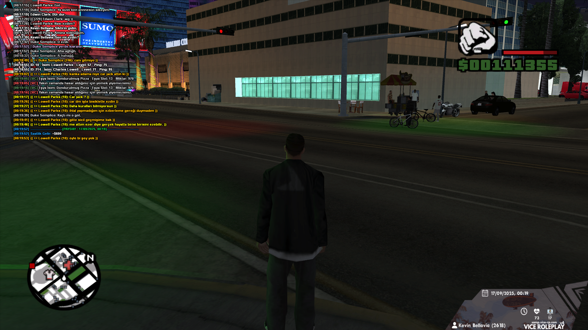 Daha sonrasında ise Duke isimli rol arkadaşım bir başkasıyla kavgaya tutuştu yaklaşık on dakika sonra ve 2v1 attı. Karakterim onun kavga ettiğini gördü ve ona yardım etmeye gitti tam bu esnada az önce RK'lı olan vatandaş bisikletiyle "/me adamı ezer." minvalinde bir emote atarak kalitesini ortaya koydu. Sonrasında bisikletinden inerek "nasıl ezdim ama?" diyerek pişkin pişkin konuştu. Arkadaşı tekrar uyardığımda ise "bisikletle adam ezilebilir" diyerek üste çıkmaya çalıştı. Kendisini bir defa uyarmama rağmen ihlal yapmaya devam etti ve bu adam 52 LEVEL.