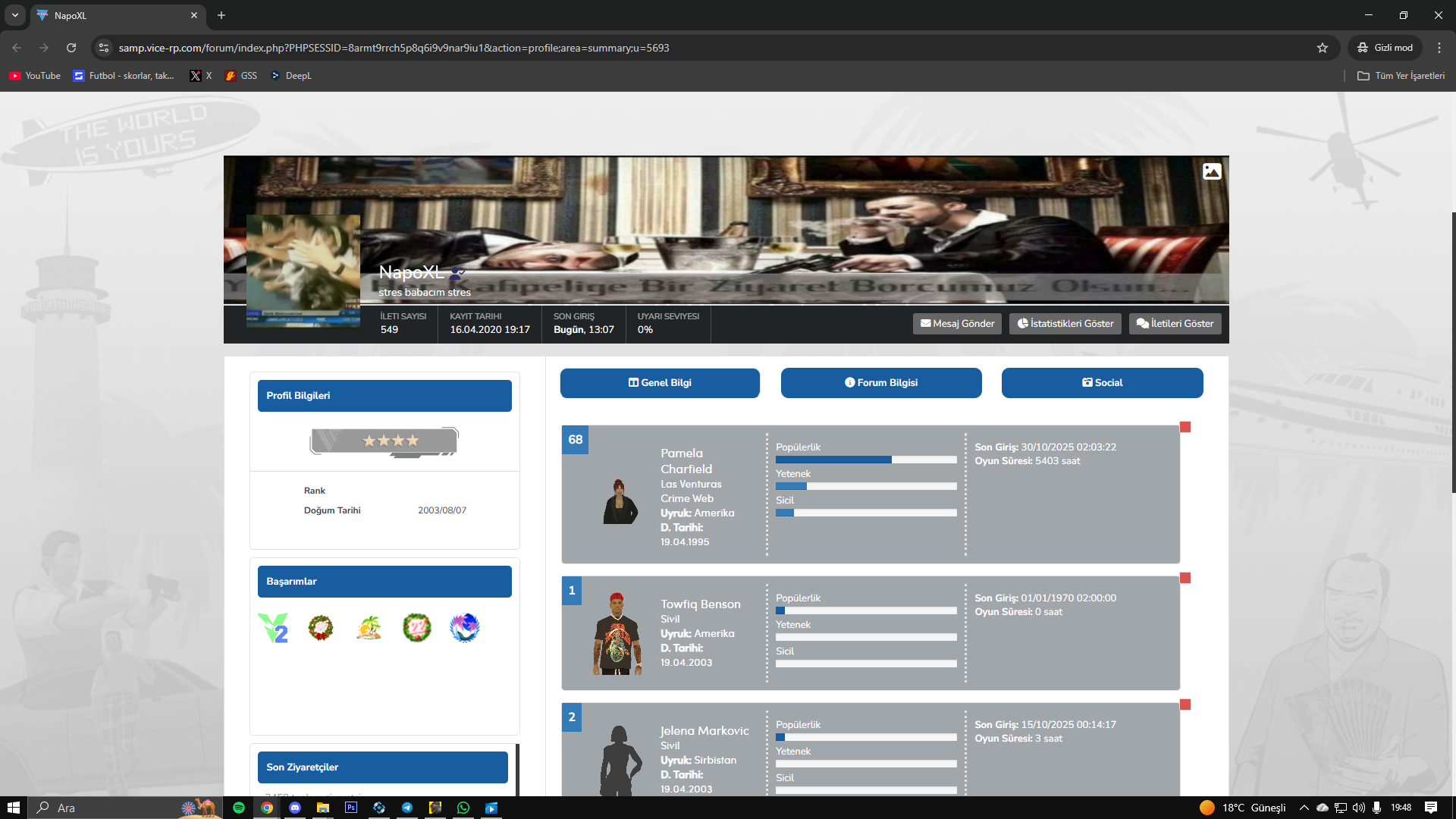 valla foruma geç girdiğim için geç gördüm mentionu, geciktiğim için sory. ben legal bir karakter yönetiyorum. bir dönem illegal birlik yani Pedrotti Crime Family içerisinde bulundu ancak o ihbar anında illegal birlikte olduğunun bir kanıtını rica edeceğim sizden.