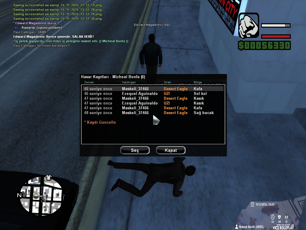 Yetmiyor, yine konuyu kapatıyoruz ve ağzınızı kapatıp gidin diyoruz. (Senin attığın videoda bunu yöneticiler görebilir, chatlog akıyor) Sen giderken de MTA roleplaye başvurup; ''Siktir oradan, sokağını siktirtme bana!'' diyorsun. Hâliyle çiçek atmayacağımıza mermi atıyoruz. Bu saydığım olayları döndürmenin tek sebebi, beni ihlale forcelaman. Aklı selim, roleplay bilen birisi bu yaptığın chatleri ancak böyle yorumlar. GBI'ye güvenip neler diyorsun chate baksana. Komik. Gerisi FM ekibinin insiyatifinde. İleti gelmeyecek.