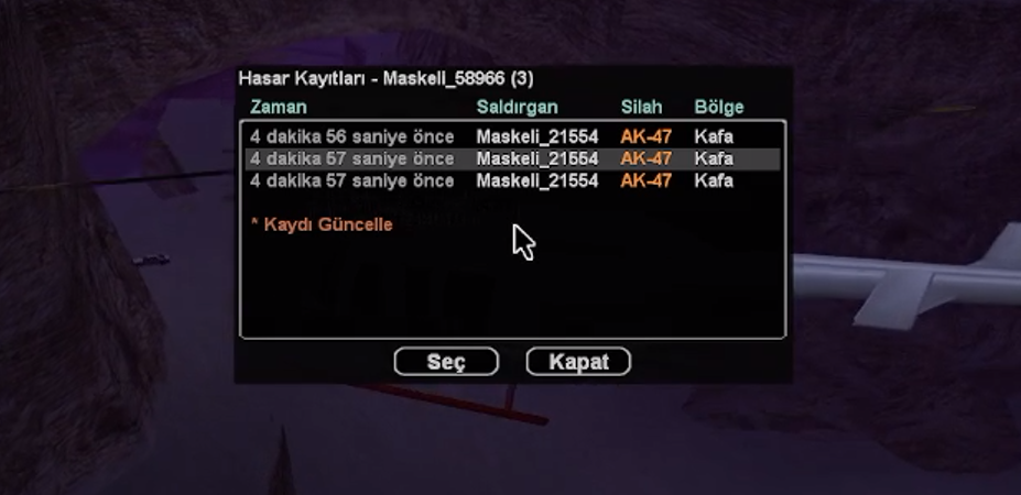 17.12.2025 saat 23.34 de yayınlanan hotline üzerine Eric karakterini kaçırmaya yönelik bir operasyondaydık ve Aslanadze birliğini takip ediyorduk şehir dışına çıktığımızda bir anda helikopterde canımız gitmeye başladı ve yanımda ki Jack karakteri ile aynı anda hasar almaya başladık. Helikopter ile havada hızlı bir şekilde giderken direkt olarak kafaya isabet almamız pek normal değil gibi gerekli incelemler ve log takibi yapılmalı silah aktarımı varlık aktarımı olabilir. Multi olduğundan şüphe ediyoruz ayrıca karakter dm için birliğe alındığını düşünüyoruz çünkü r1 karakter rütbesi yok. Gerekli kanıtları aşağıya bırakıyorum.