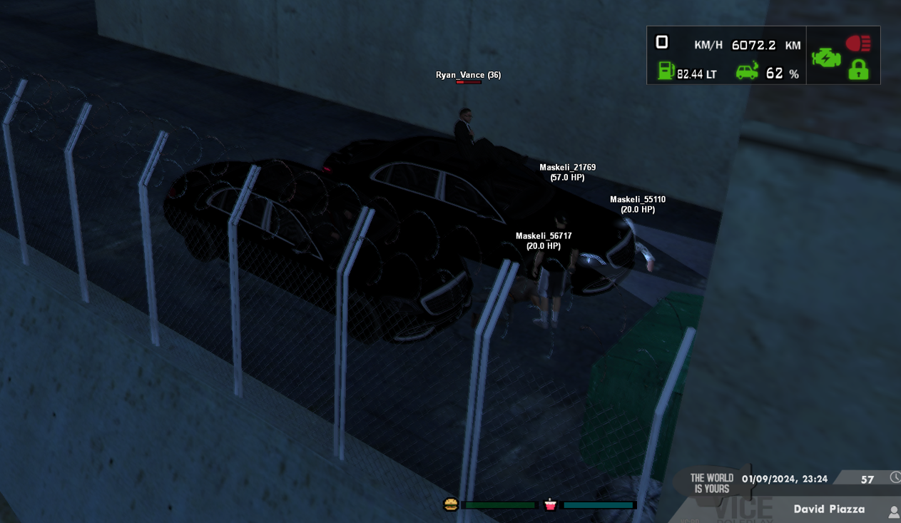 David Piazza karakteri sunucu bakıma alınmadan günler önce, hiç bir şey ortada yokken Cesar Gutierrez karakteriyle üzerime ateş açtırdı, bu adam sivil ve birliği kapanmış bir oyuncu. Piazza'nın Onaylı hooduna saklanıyor ve bu adamın peşine düştüğümüzde adamı Piazza hoodunda buluyoruz zaten. Bulmak hiç zor olmamıştı. Piazza karakteri azmettirdiğini biliyorduk. Bizimle savaşa girmek istiyor ısrarla, hali hazırda bir kaç gün önce bitmiş bir savaş olmasına rağmen yapıyordu bunu. Biz kale almasak bile bizi forcelamaya devam etti. yani Deatmatching kuralı kapsamında ihlalde bulundu. "- Birisi size saldırsın diye sürekli sataşmak, provoke etmek" Dediğim gibi ironik olmuş bi tık.