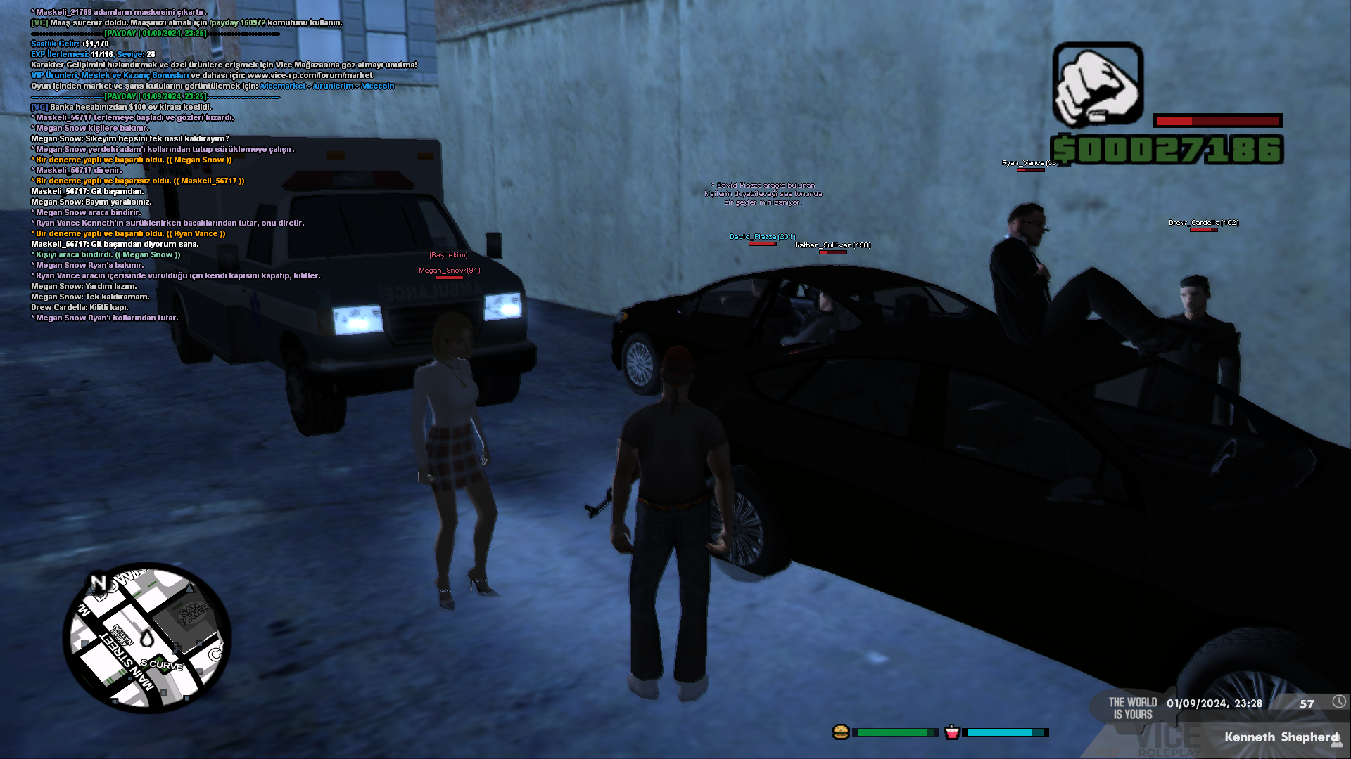 @Red Army Prime biraz kendisiyle çelişmiş anlaşılan, iddia etmiyorum direk söylüyorum Cesar Gutierrez karakterini üzerimize ooc yollardan saldırı açtırıyor, Birlik içerisinde Hotline yapmıştık akşam saatlerinde esp ile mermicide yerimizi buluyor ve ateş açtırıyor, aynı zamanda arkadaşa hileci/Bugger adı altında şikayetimizi de yaptık. Tabi saldırı esnasında David Piazza olay yerinde araçla etrafımızda daire çiziyor ve hemen kendi hastanesinden Ambulans çağırıp hastaneye getiriyor bizi.