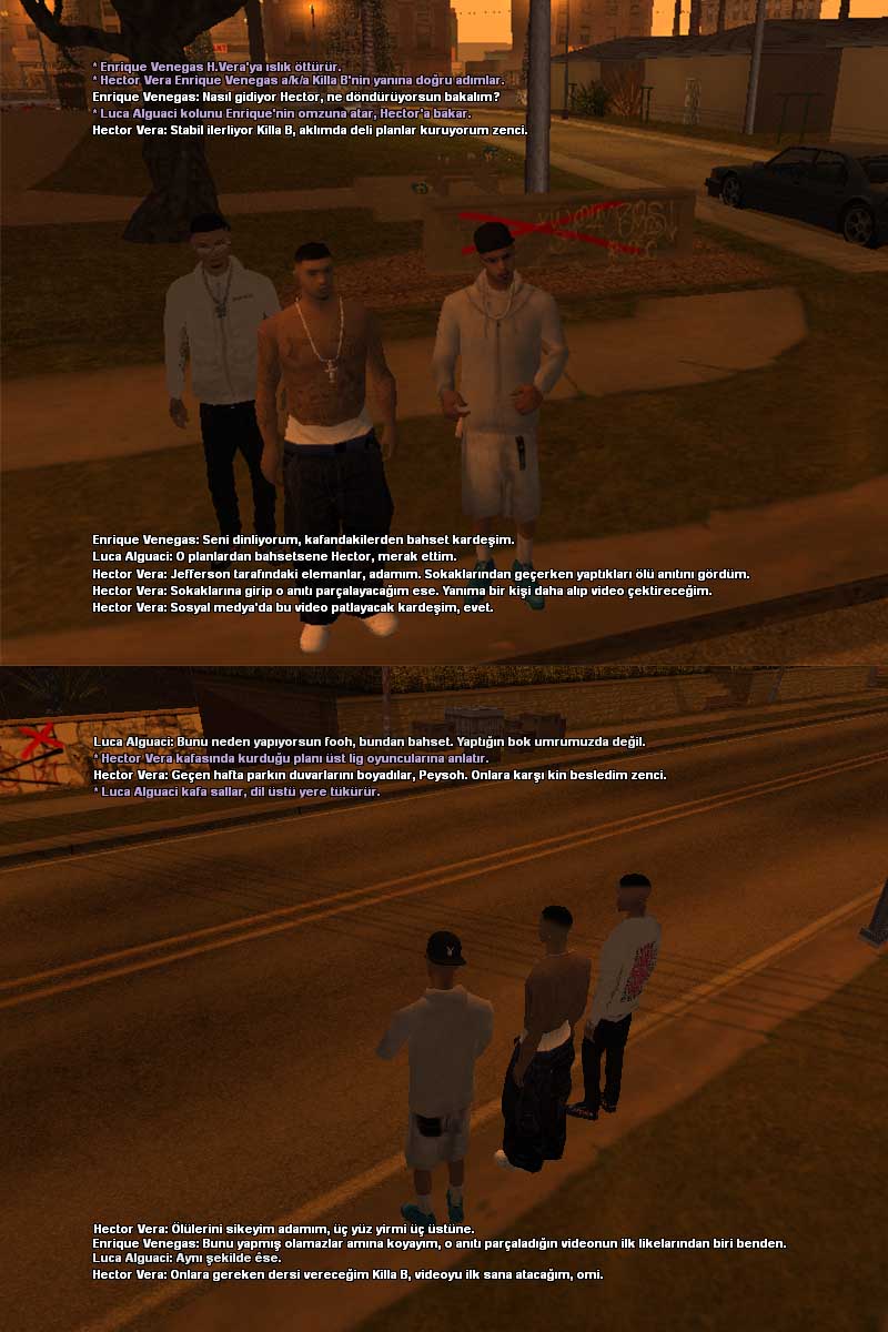 Güzel ekran görüntüleri, günümüzde PBS13 pek aktif olan bir set değil fakat siz bunu güzel yansıtıyorsunuz. Sunucuda aktif düşmanlarınız olmadığı için plug bir şekilde bu rolleri yansıtırsanız güzel olabilir. 18 veya 38, MS13'de olur. Bir de sunucuda eMe gibi bir organizasyon yok, sunucuda direkt olarak 13 çetesi yok aslında. Bu rolü de plug bir şekilde yansıtırsanız hoş olur, aranızdan birinizin Camarada karakteri açması yeterli olur.