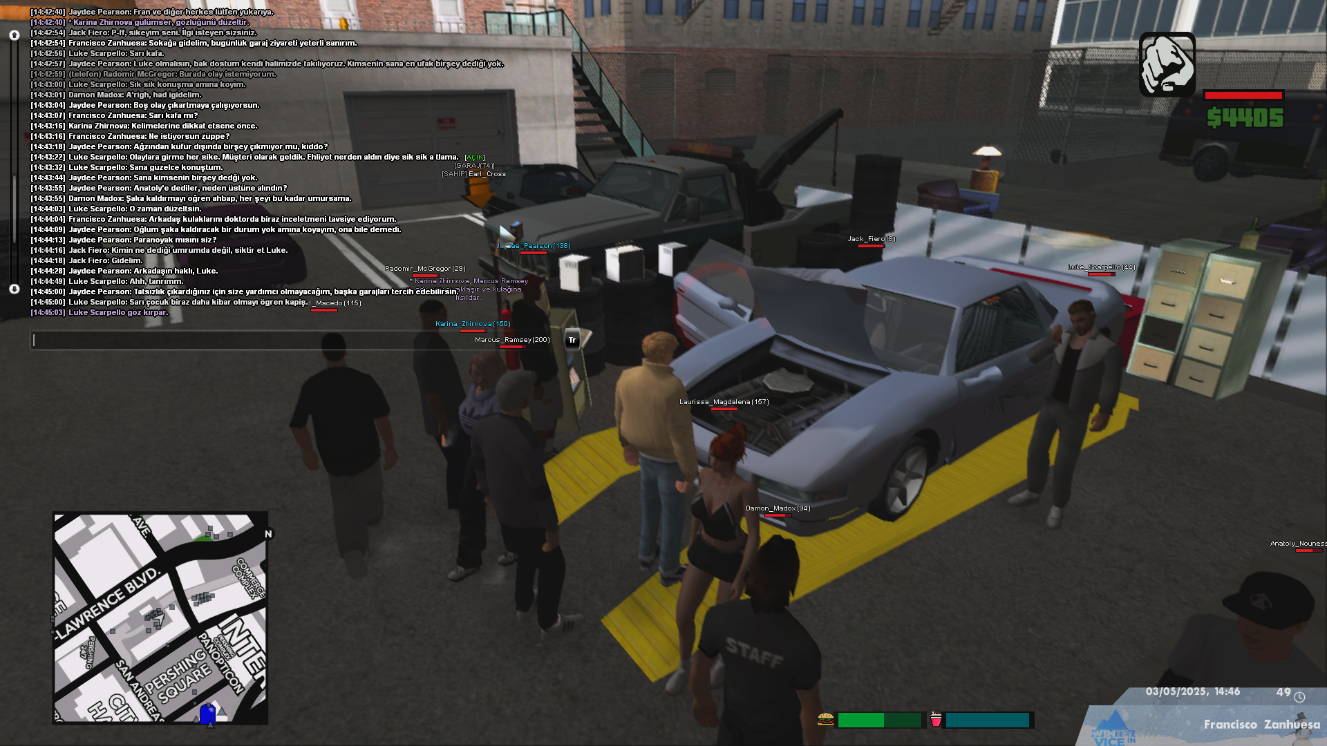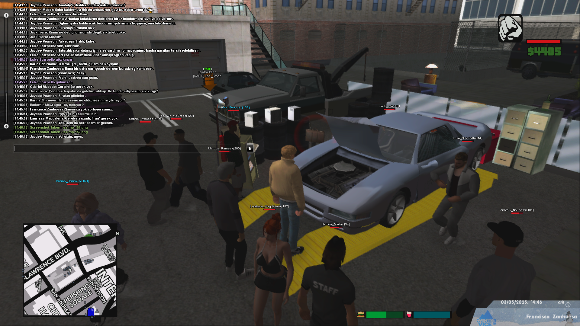 Not: Ortam Bayside birliğinin hood bölgesidir, normal şartlarda hood sistemsel eklenmemiş sadece, o kadar. Ortamda bulunan herkes 3 farklı yarışı birliği üyeleridir. Bayside, Hotenginees Racing Crew ve Califas birlikleri üyeleri bulunuyor. Toplamda 9 kişiyiz, karşısı ise yalnızca iki kişi.