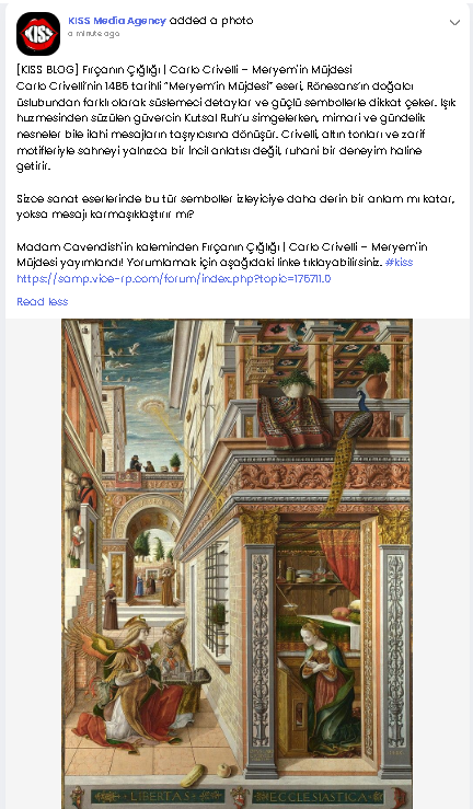 XV. yüzyılın sonlarına doğru İtalya’da Rönesans’ın görkemli eserleri giderek insan merkezli, doğala yakın ve matematiksel olarak mükemmelleşen bir üslup kazanıyordu. Ancak Carlo Crivelli, bu akımın tam ortasında kendine özgü bir yol seçti. 1486’da yaptığı “Meryem’in Müjdesi”, dönemin sıradan üslubundan oldukça farklıdır. Çizgisel, süslemeci, hatta biraz da “ortaçağı andıran” detaylar, onun bilinçli bir tercih olarak Rönesans’ın ideal doğalcılığından uzaklaştığını gösterir.