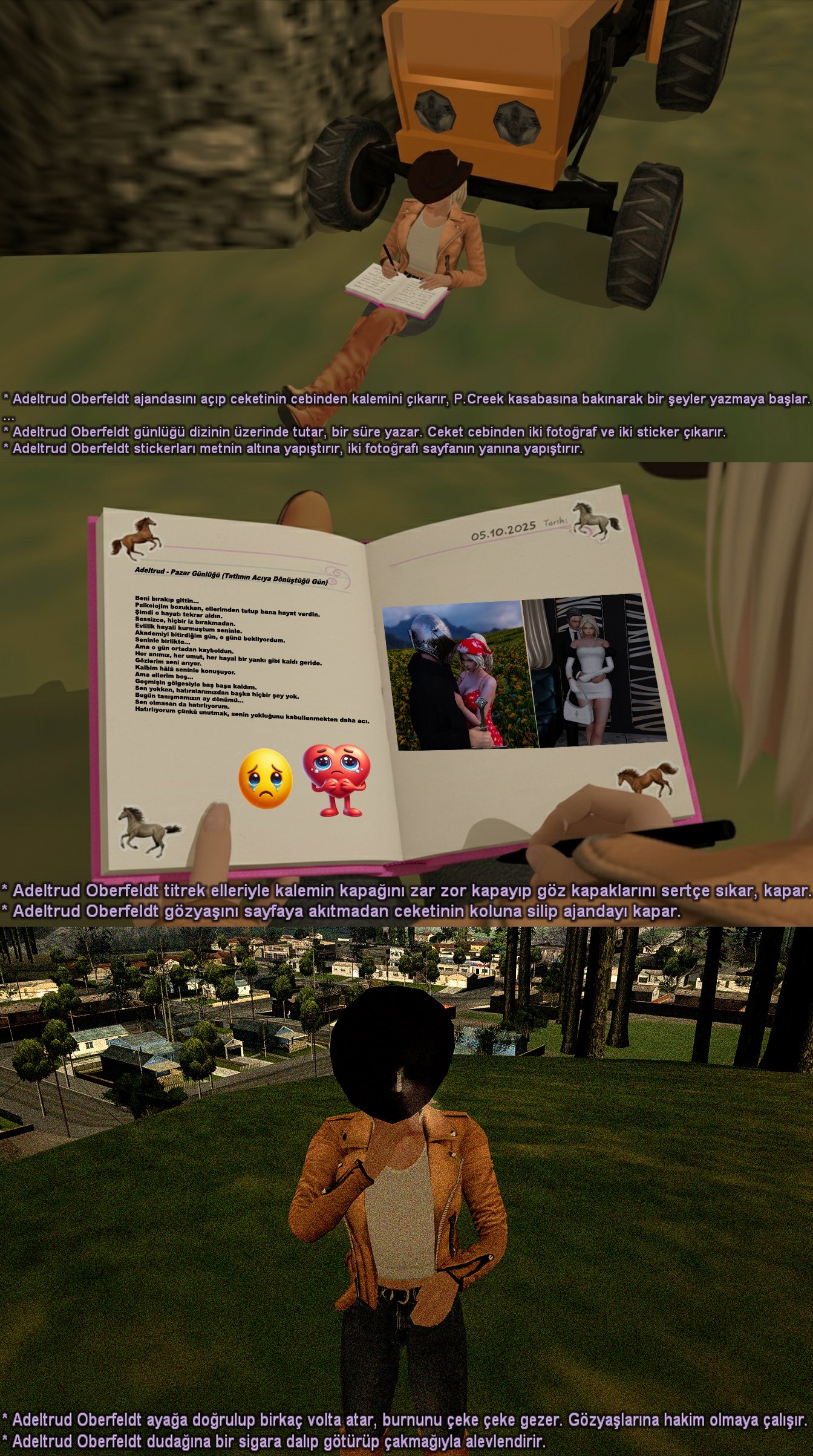 Eric Bouildin ile tanıştığı günden bir ay sonra, Palomino tepesinde duygularını günlüğüne dökmüş."Hatırlıyorum çünkü unutmak, senin yokluğunu kabullenmekten daha acı."