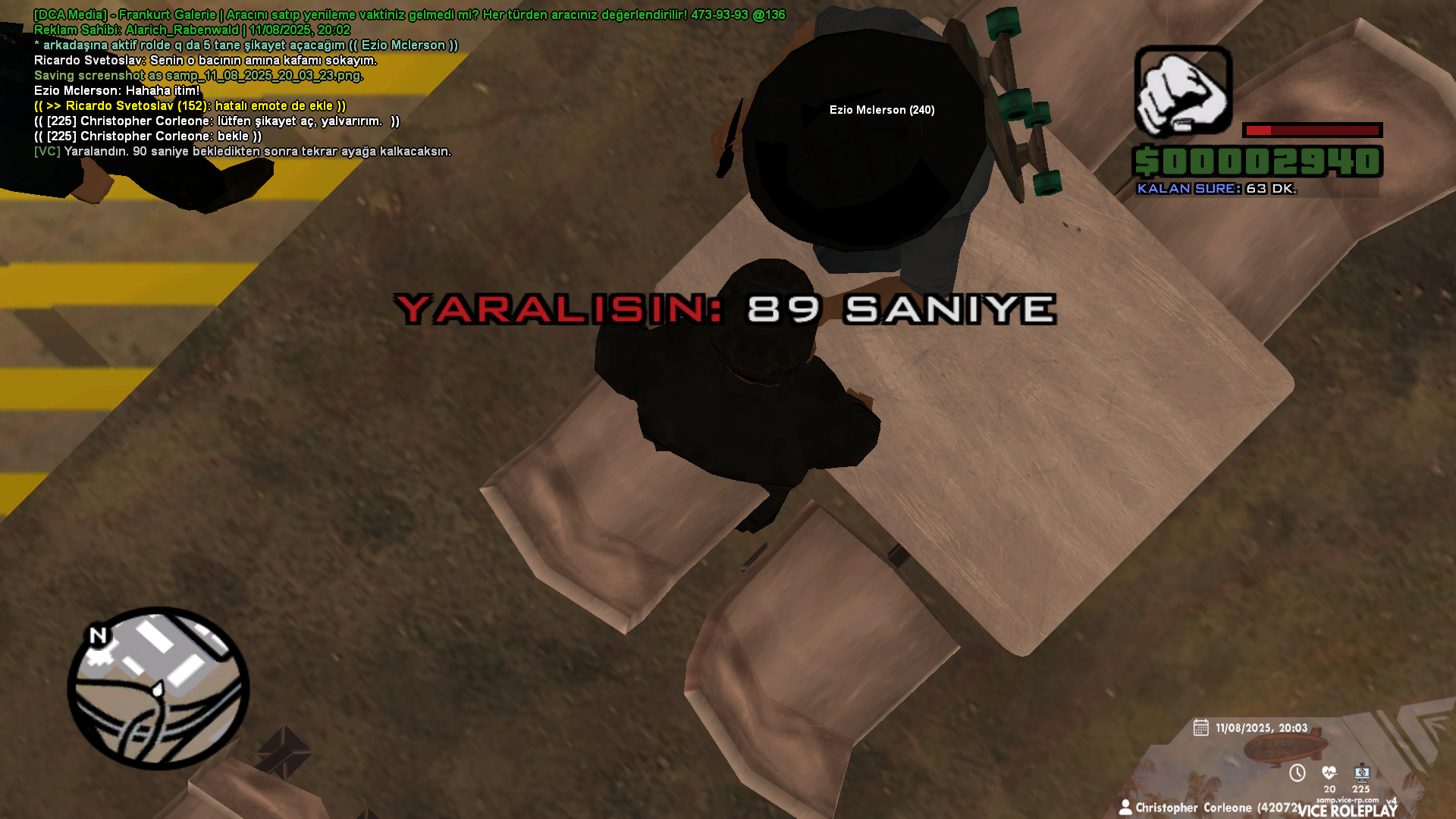 İhlal edilen kuralı buraya yapıştırın:[DM, Trolling, Non-RP, Emotesiz Saldırı]