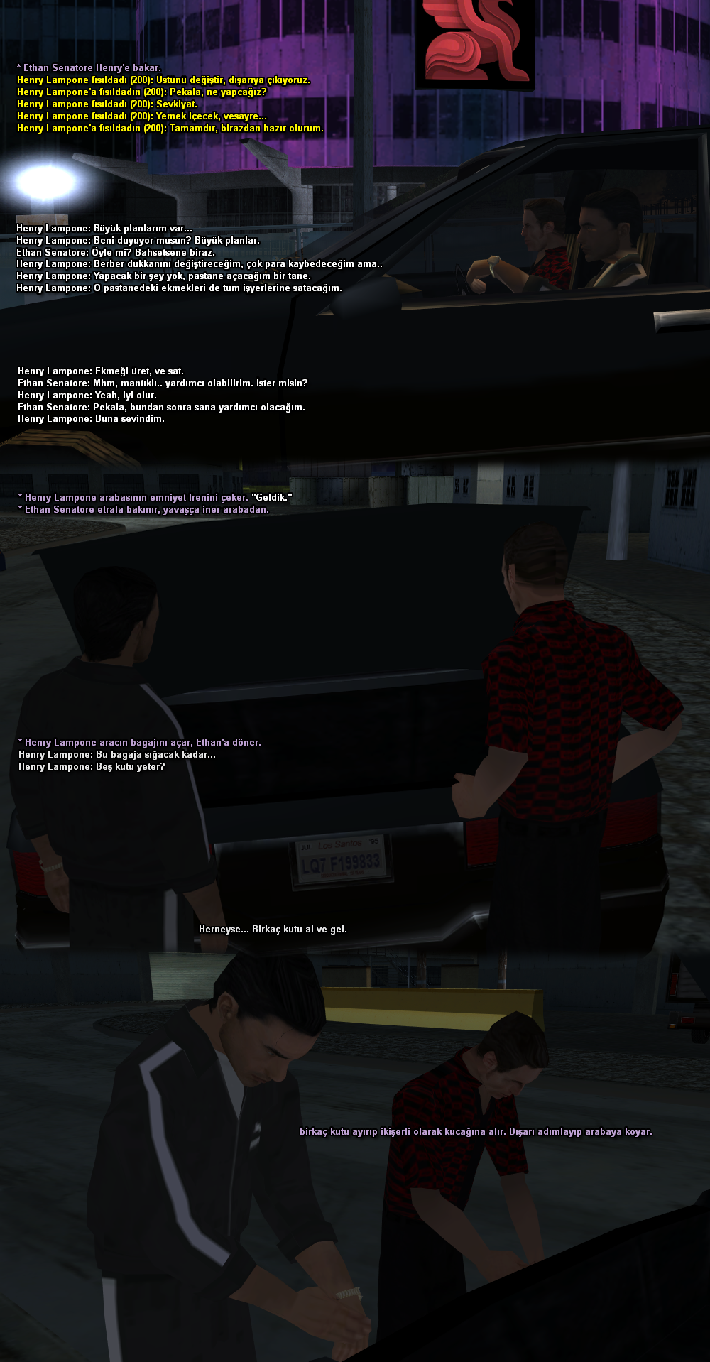 "...Kendi aralarında 'Alley' adını verdikleri, nezih bir bulvardı. Pek az kişi buranın ilerleyen zamanlarda bir suç imparatorluğunun kalbi olacağını tahmin edebilirdi. Tahmin, yazdım. Çünkü Venturas'ın sokaklarından gelmiş bir 'Mobster' Vice Şehrinde serserilik yapacaksa bile, bu uzun sürecek bir dans olması zor bir şeydi. Bahsettiğim isim bu kitabı satın alan/okuyan kişilerin tanıdığı bir isim: Adriano Pedrotti. Pedrotti, sıklıkla yeşil bir polo ve onu tamamlayıcı siyah güneş gözlüğü takan şık bir adamdı. -şu sıralar polo giymiyor.- Bu kitabı yazarken, açık sözlü olacağıma dair kendime bir söz verdim. Kadınları cezbeden bir adam olmasının yanı sıra, onun gözlüklerinin ardında ışıltı saçacak kadar parlayan gözlerin, ufak bir kıvılcım ile nasıl kolayca şeytânın sureti olabileceğini görmüştüm. Keyfine düşkün bir adam olsa da, öfkelenmesi her şeyi değiştirirdi. Her ne kadar onun 'imparatorluğu' en başta onun dümeni ile yön alsa da, zamanla sivrilen iki adam onun her konuda yardımcısı olmuş, hatta zaman zaman dümeni onlar devralmıştı..."