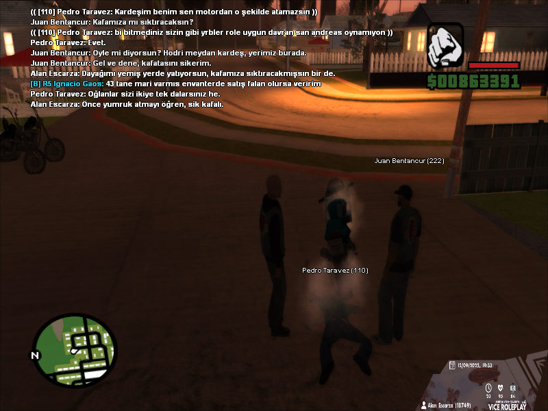 Pedro Taravez isimli karakter rol yaptığımız bölgeye gelerek o an aktif olan rolümüzü baltaladı, agresif yaptı. Motordan inince brawl başladı, brawlın sonunda kaçmak için bhop yaptı. Yaralıya düşünce rolü /b'den böldü, IC kanaldan "ulan" yazdı ve yaralı olmasına rağmen karakterlerimize küfür edip, ölüm tehdidi savurarak fear roleplay ihlali yaptı. Yaralı süresi bitince bizle hiçbir rol yapmadan motoruna atlayıp gitti.