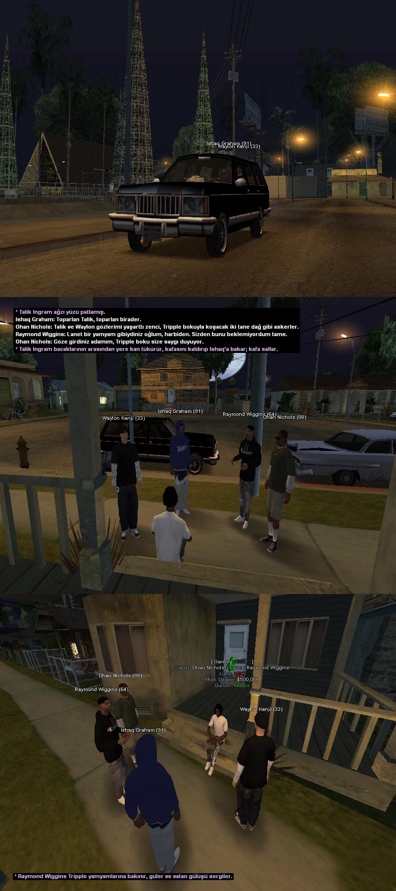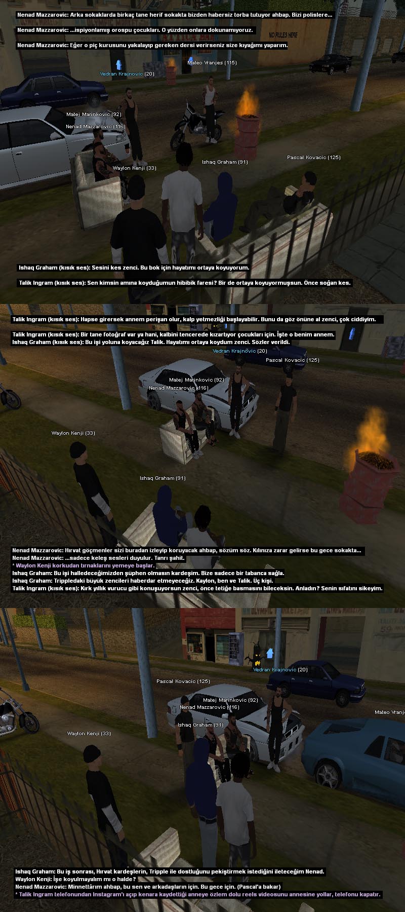 Katılım hk.Grove sokağında bulunan çetenin son halkasını canlandırıyoruz, kendi aramızda dramasını ve aksiyonunu yaşatıyoruz. Karakterlerimiz dövmesiz, çete işlerinden bilmeyen ama öğrenen ve özenen karakterlerden ibaret. Olayımız keyif almak, gülüp eğlenmek, anılar biriktirmek ve rol konusunda gelişime açık olan insanlara yardımcı olmak. Karakter hikayenizi, dramanızı ve gelişimini ön planda tutuyoruz ve buna ayak uydurabilecek arkadaşlar için alımlarımız açık.keklikgibiyim & kalibre223 — discord.gg/h4vNZ6NAYf, Tripple Makers Oluşum Discordu.