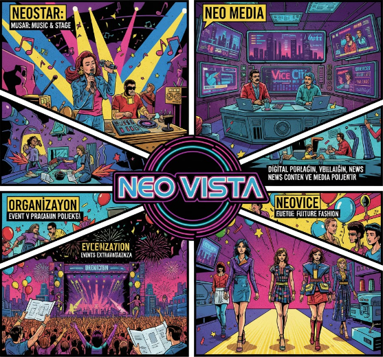 Medya, Moda ve Müzik Devrimi! NeoVista Group, misyonunu gerçekleştirmek için dört ana bölümle sahnede: Her biri kendi alanında iddialı ve parlak! Müzik, sahne ve dijital projelerin yaratıcı kalbi olan NEOSTAR, Vice City’nin yeni yeteneklerini keşfedip parlatmaya hazırlanıyor. Şehrin en güvenilir bilgi kaynağı olma hedefiyle yola çıkan NEO CHANNEL, dijital yayınları ve güncel içerikleriyle magazin gündemini belirleyecek. Göz alıcı etkinliklerin, unutulmaz partilerin ve büyük projelerin mimarı ise şüphesiz ORGANİZASYON ekibi. Ve tabii ki, çağdaş tarzı özgün tasarımlarla buluşturan, podyumların yeni gözdesi NEOVICE moda markası! Bu dört dinamik birimin birleşimi, NeoVista’yı sadece bir şirket değil, yaratıcılığın, estetiğin ve vizyonun birleştiği, geleceğe damga vuracak bir marka yapıyor.