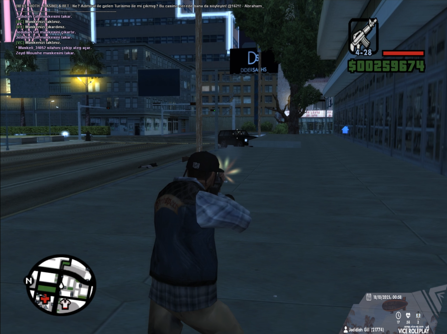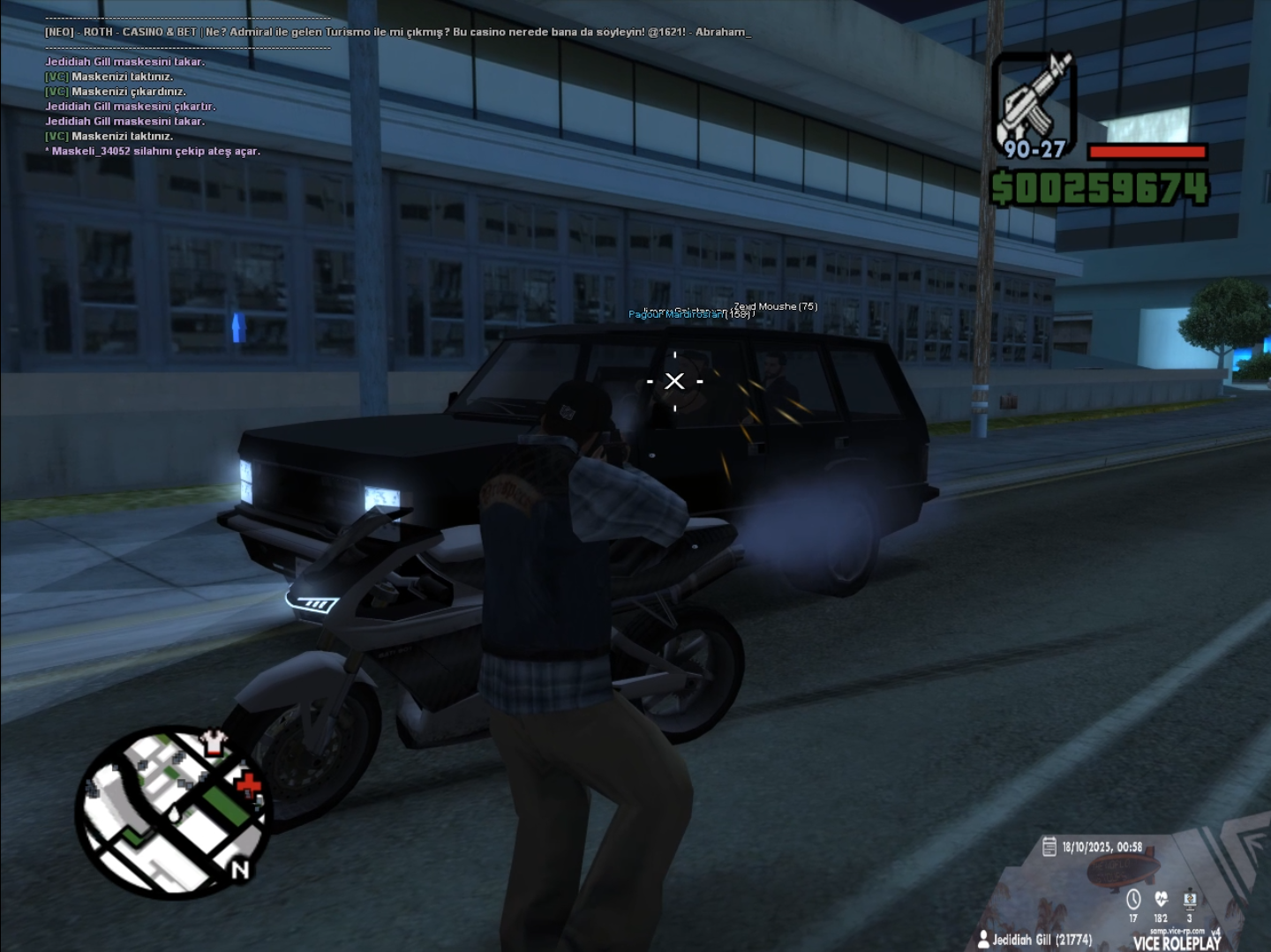 Araçtan inip aynı şekilde karşılık verdim ve hit almaya başladığınızda bunnyhop yaparak kaçmaya başladınız, siz kaçmaya başlayınca ben de aynı şekilde bir binaya gidip ev interioru içinde karakterimin telefonunu kapatıp içeride bekledim. Silahlı çatışma bittikten sonra çıkış sağladım ve ardından hemen tekrar girdim, tekrar girdiğime dair bilgisayarımda ekran görüntüsü mevcut.
