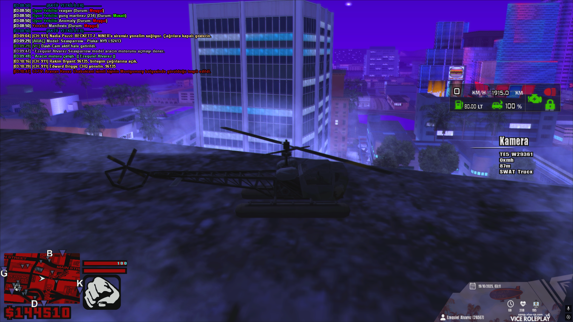 Vice gibi düzen ve adalet temelli bir yapı içerisinde, kuralları hiçe sayarak teleport hilesi gibi üçüncü parti yazılımlarla avantaj sağlamaya çalışan oyuncular, yalnızca bireysel etik ihlallere değil, aynı zamanda tüm sunucu dengesine ciddi zarar vermektedir. Revaz Chabukiani adlı karakterin, açıkça gözaltında tutulduğu süre içerisinde /q komutu ile oyundan çıkıp yalnızca birkaç dakika sonra şehir içinde, aktif çatışma bölgesinde bir anda belirerek savaşa katılması; video kayıtları ve zaman damgalarıyla net şekilde kanıtlanmıştır. Bu durumun, yalnızca teleport hilesiyle açıklanabileceği aşikârdır. Üstelik karakter, gözaltından çıkarıldığında üzerinde bulunan M4 silahına video kanıtlarında sahipken, yalnızca dakikalar sonra tekrar sunucuya giriş yaptığında bu silahın envanterinden kaybolmuş olması da ciddi bir tutarsızlık göstermektedir. Bu da teleport dışında, muhtemelen illegal envanter müdahalesine ya da kayıt manipülasyonuna işaret etmektedir. Tüm bunlara ek olarak, ilgili şahsın yeniden polisler tarafından admin aracılığıyla yanımıza çekilmesi, fakat öncesinde herhangi bir bilgilendirme yapılmaması da sürecin şeffaflıktan uzak bir şekilde yönetildiğini göstermektedir. Sunucunun en disiplinli ve son kalelerinden biri olan Vice içerisinde bu tarz etik dışı davranışların yaşanması, yalnızca oradaki oyuncuların değil, tüm sunucu topluluğunun emeğine yapılmış bir saygısızlıktır. Bu nedenle, ilgili oyuncunun derhal kalıcı şekilde uzaklaştırılması, varsa bağlı bulunduğu birliklerin kapatılması ve örnek teşkil edecek ciddi bir yaptırım uygulanması, sunucunun genel güvenliği ve oyuncuların adalet duygusunun korunması adına son derece yerinde ve gerekli olacaktır.