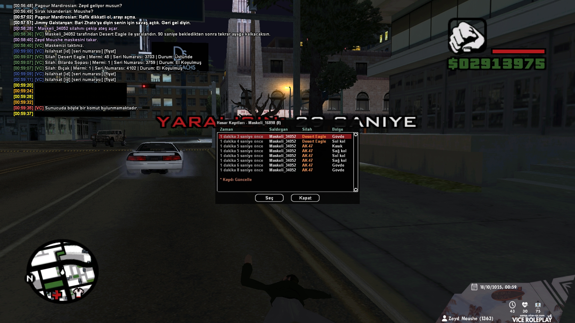 Hangi AK-47 hiç sekmeden, hiç kaçırmadan aynı saniye içerisinde BEŞ tane mermi atıyor? Araba çarpıyor, anim yapmıyor karakterin. AK-47 kullanıyorsun, M4'den daha hızlı mermiler gidiyor. Hile kullanıp üzerine video yapıp birde nasıl paylaşıyorsun? Bu da ayrı bir seviye zaten. Yaklaşık bir haftalık bir savaş rolüne girdik. Hiç görmediğim hileleri sizinle savaşırken gördüm, tebrik ederim. Hile konusunda kendinizi bayağı geliştirmişsiniz. GTA'dan anlayan bir yönetici videoyu bir defa izlerse hile olduğunu anlayacaktır. Konu hakkında daha fazla uzatmaya gerek yok. Sonuçlanmasını ve birliğinizin kapanmasını bekleyelim.