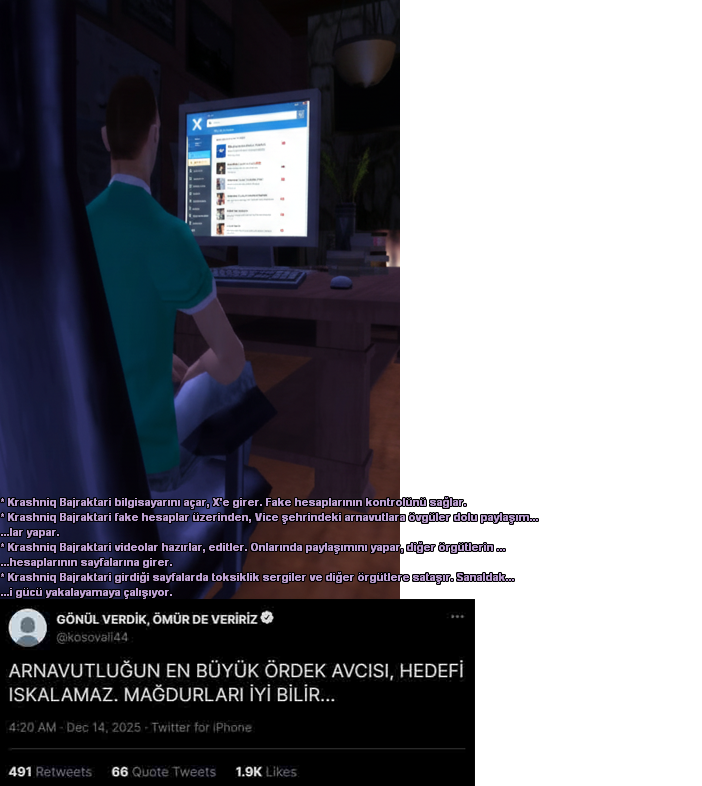 Son yıllarda Arnavut gruplarının bir kısmı, itibarını sosyal medyada inşa etmeye çalışıyor. Lüks arabalar, silah pozları, sahte tehditler ve abartılı paylaşımlarla “mafya” kimliği sergileniyor. Gerçekte ise bu gösteriş, gücün değil görünme arzusunun ürünü; ekran arkasında oynanan bir rol, sanal bir kabadayılık. Sosyal medya, onlar için suçtan çok imajın sahnesi haline geliyor.