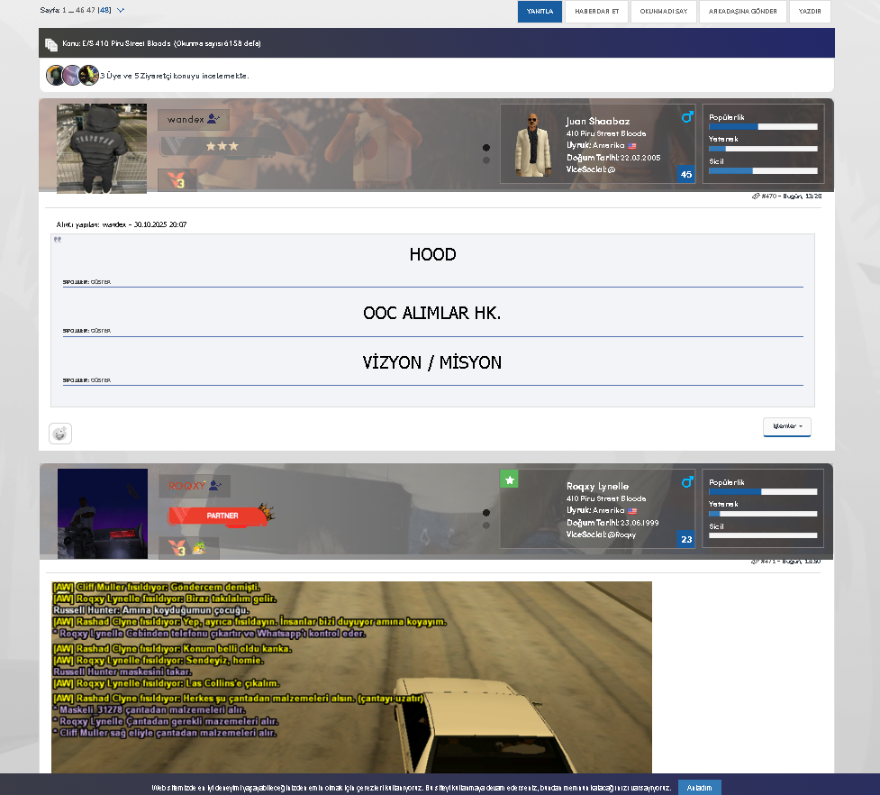 Yapılan ihlali tüm detaylarıyla açıklayın: Yolda motorumla gidiyordum, daha sonra bir anda bir çete birliğindeki oyuncunun polise başka bir illegali şikayet ettiğini gördüm. Şimdi forumdan baktım arkadaş kendisini birlikten çıkarmış. Gerekli kanıtları aşağıda sunacağım.