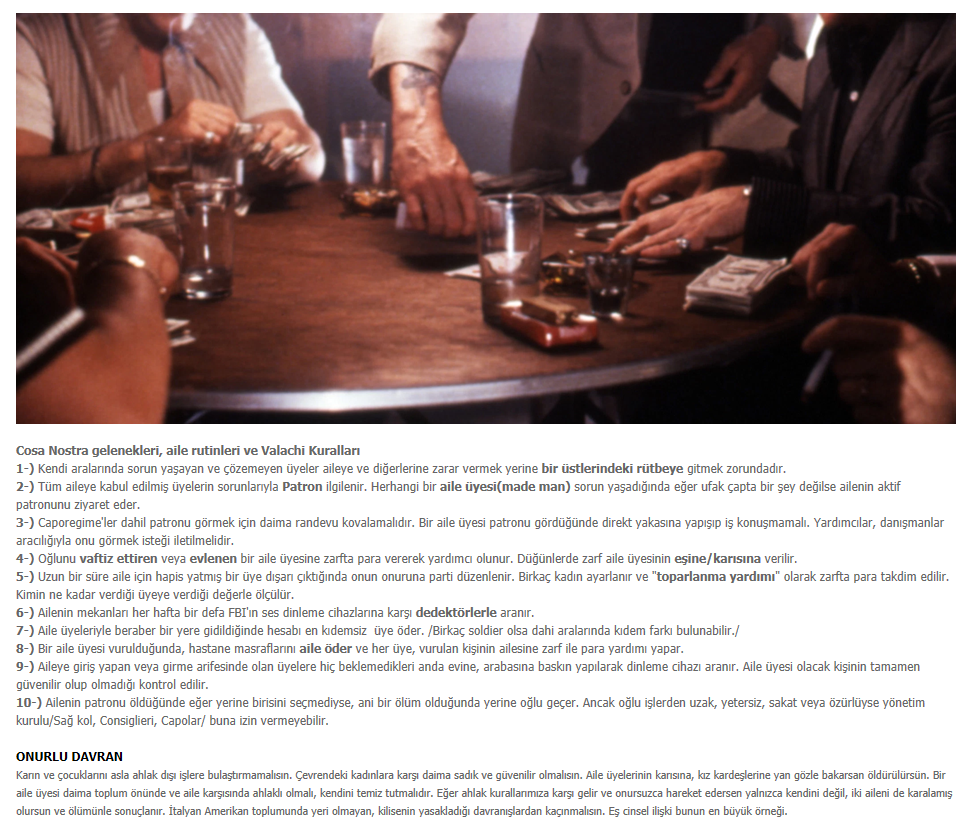 Birlik olarak amacımız cosa nostra kültürünü en iyi şekilde yansıtabilmek ve guest roller ile destekleyip eğlenmek olacaktır.