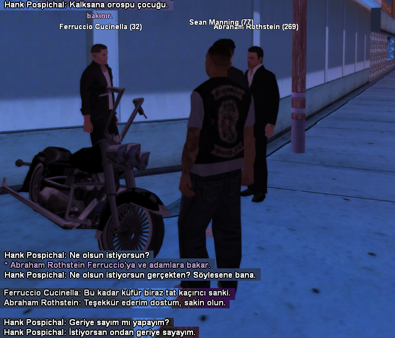AlıntıOluşuma katılmak isteyen oyuncular için Yeterli Türkçe ve imla kullanımı esastır.Platform kurallarına mütabık kalınabilmelidir.Yapı içerisinde her unsur roleplaye göre belirlenir, düzenlenir. Rolden hariç hiç bir karar, rank-up, karakter ölümü veya rol ile alakalı bir konu netleştirilemez.Temel prensip oluşuma katılan her oyuncuya roleplaye dair bir kazanım, tecrübe elde ettirmektir.Oluşuma dahil olabilecek karakterler Alt/yoksul tabakadan gelen ve suça meyilli olabilecek her potansiyel kişi ve kişiler.Bir motor kulübü ortamına ayak uydurabilecek, kültürü sevebilecek ve bu işi benimseyebilecek kişi ve kişiler.Oluşumun hedeflediği temel öğretilerLore'a bağlı doğaçlama roleplayRoleplay için görsellemeOyun modları ve modellemeSorular, katılım konusu ve daha fazlası için PM yoluyla bana ya da birlik üyelerine ulaşmaktan çekinmeyin.dc adresleri: nachgeladenpapa - emirhanmis - chikobytehttps://discord.gg/a8eWSDeSTp